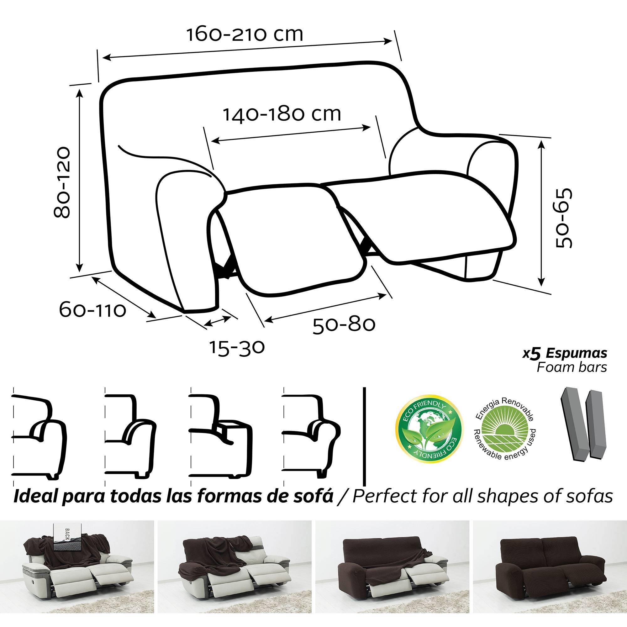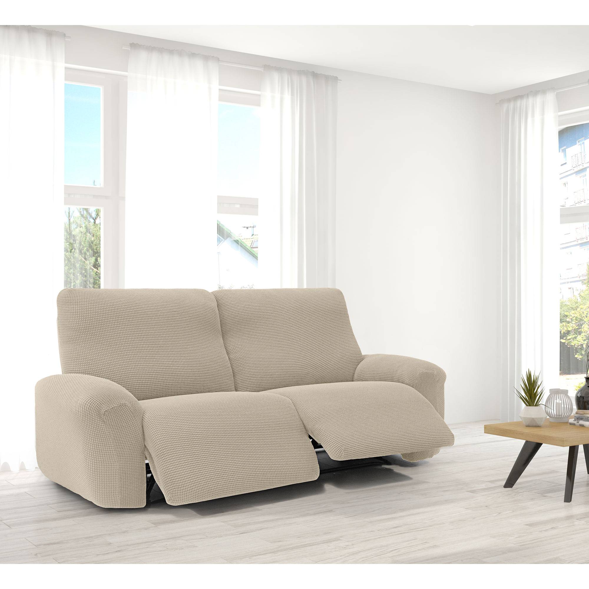 Funda Súper Elástica para sofá RELAX de 2 plazas con 2 reposapies abatibles tipo Relax.